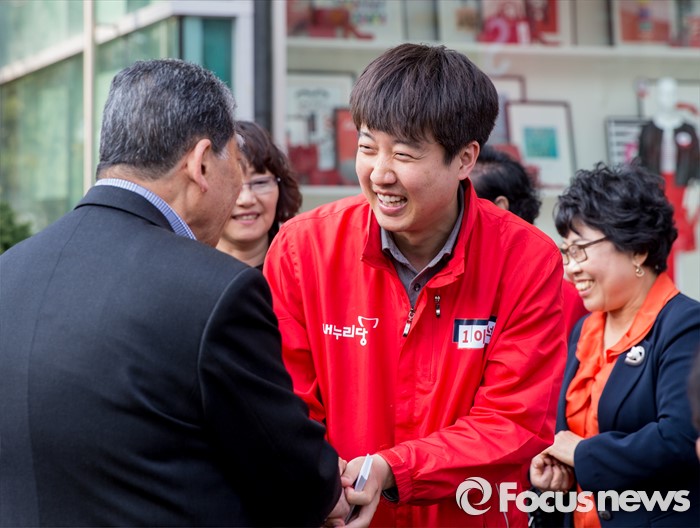 (서울=포커스뉴스) 7일 오후 서울 노원구 롯데백화점 인근에서 이준석 새누리당 노원구병 후보 지원유세에서 이 후보가 시민들과 악수하고 있다.