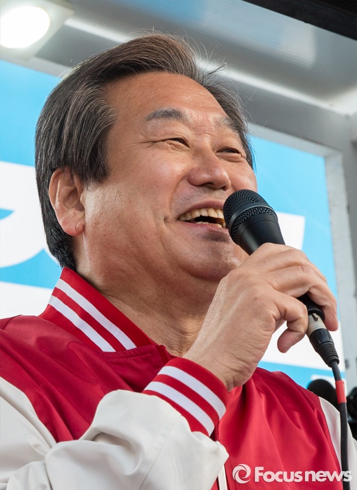 (서울=포커스뉴스) 7일 오후 서울 노원구 롯데백화점 인근에서 이준석 새누리당 노원구병 후보 지원유세에 나선 김무성 대표가 '이준석'을 '안철수'로 바꿔 부르는 실수를 한 뒤 멋쩍게 웃고 있다.