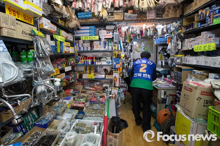 (서울=포커스뉴스) 이용선 더불어민주당 양천구을 후보가 7일 오후 서울 양천구 신월동 신월시장에서 선거운동을 하고 있다.