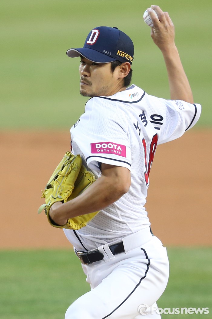 (서울=포커스뉴스) 7일 서울 잠실구장에서 열린 2016 프로야구 NC-두산 경기에서 1회초 두산 선발투수 노경은이 투구하고 있다.