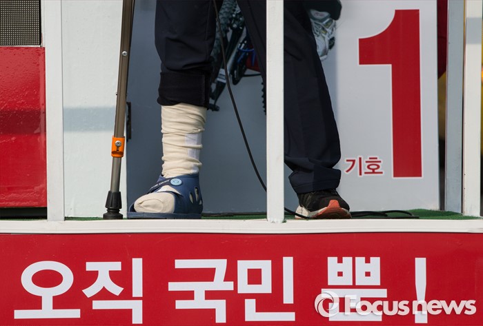 △ 다리 다친 김용태 후보