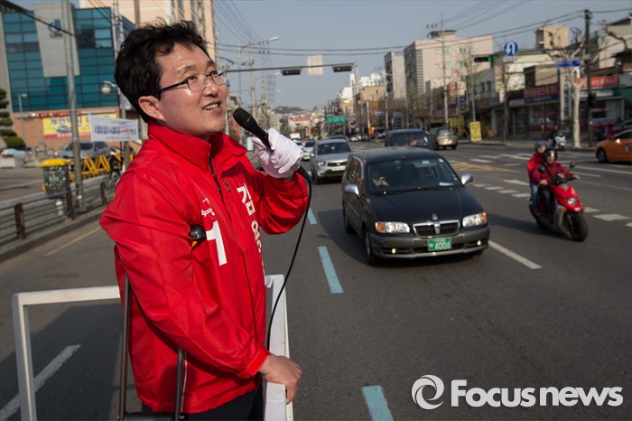 (서울=포커스뉴스) 김용태 새누리당 양천구을 후보가 7일 오후 서울 양천구 신월동 일대에서 선거운동을 하고 있다.