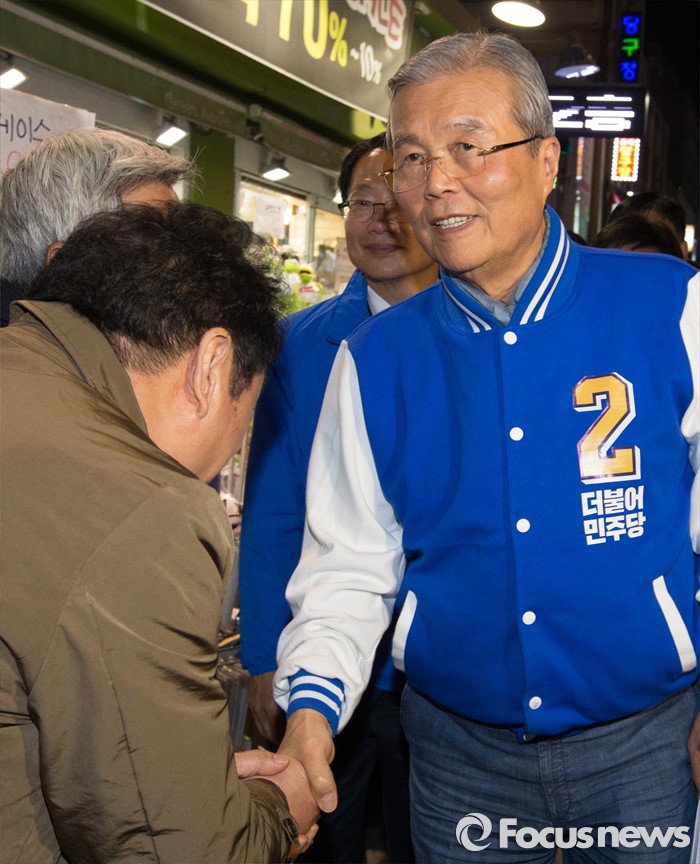 (청주=포커스뉴스) 김종민 더불어민주당 대표가 7일 오후 충북 청주 상당구 성안길에서 시민들과 악수를 하며 청주시 후보 지지를 호소하고 있다.