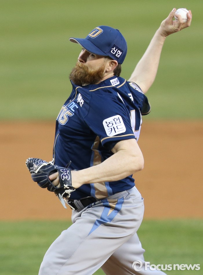 | △ NC 선발투수 해커의 힘찬 투구 |