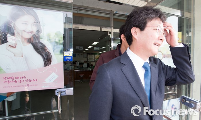 (대구=포커스뉴스) 무소속 유승민 후보가 8일 오전 대구 북구 산격3동 주민센터에 마련된 사전투표소에서 사전투표를 마치고 투표장을 나서고 있다.