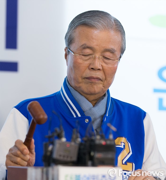 (서울=포커스뉴스) 김종인 더불어민주당 비대위 대표 겸 선대위원장이 8일 오전 서울 은평구 응암로 박주민 은평구갑 후보 사무실에서 중앙선거대책위원회 회의에 참석해 의사봉을 두드리고 있다.