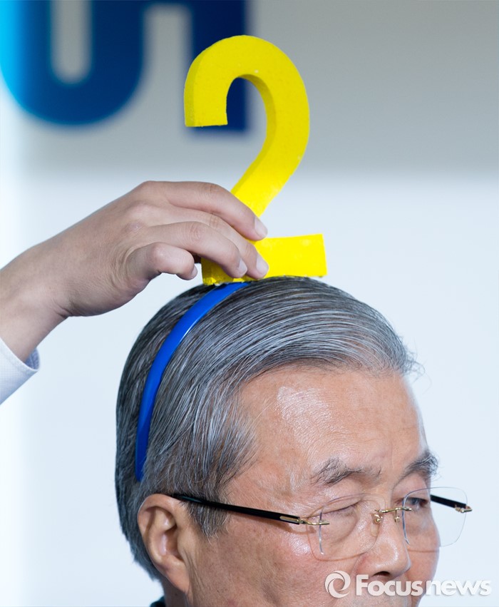 (서울=포커스뉴스) 김종인 더불어민주당 비대위 대표 겸 선대위원장이 8일 오전 서울 은평구 응암로 박주민 은평구갑 후보 사무실에서 중앙선거대책위원회 회의 전 2번 머리띠를 착용하고 지역 어르신들과 기초노령연금인상 공약 퍼포먼스를 하고 있다.
