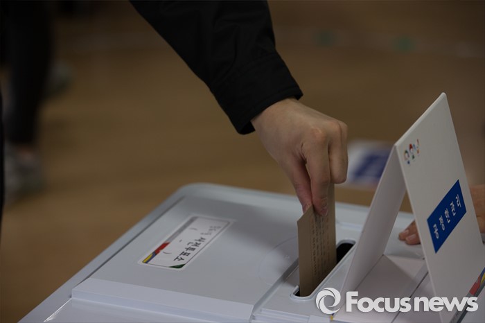 (인천=포커스뉴스) 제20대 국회의원 선거 사전투표 시작일인 8일 오전 인천 연수구 송도1동 주민센터에서 인천 중부해양경비안전본부 소속 해경이 투표용지를 넣고 있다.