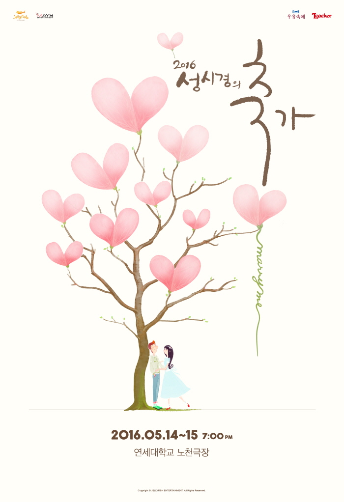 2016 '성시경의 축가'는 오는 5월14, 15일 오후 7시 연세대학교 노천극장에서 개최한다.7일 오후 8시 하나티켓을 통해 오픈된 2016 '성시경의 축가' 티켓이 9분30초 만에 매진됐다. 사진은 공연 포스터. <사진제공=젤리피쉬>