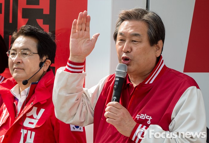 (안양=포커스뉴스) 8일 오전 경기 안양시 범계역 인근에서 심재철 새누리당 안양동을 후보 지원유세에 나선 김무성 대표가 유권자들의 지지를 호소하고 있다.