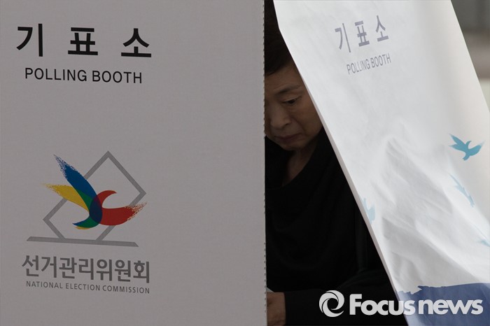 (서울=포커스뉴스) 4.13총선 사전투표 첫째날인 8일 오전 서울 용산구 서울역에 설치된 남영동 사전투표소에서 시민들이 투표를 하고 있다. 사전투표는 4.8~4.9일까지 진행된다.