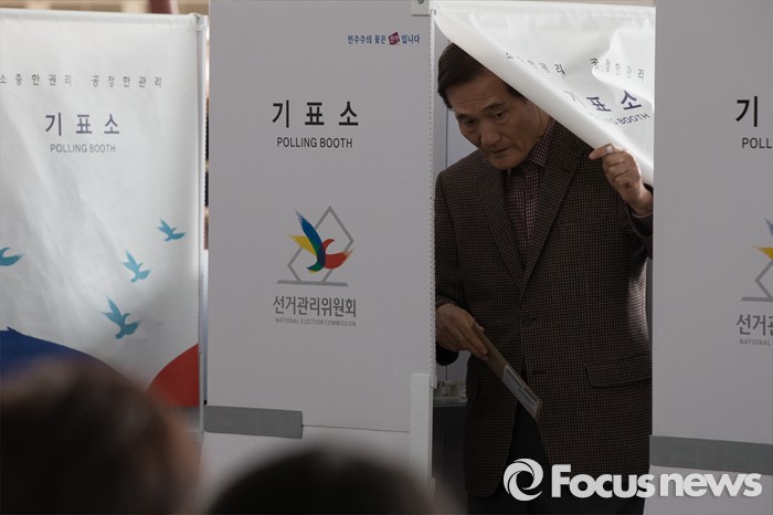 (서울=포커스뉴스) 4.13총선 사전투표 첫째날인 8일 오전 서울 용산구 서울역에 설치된 남영동 사전투표소에서 시민들이 투표를 하고 있다. 사전투표는 4.8~4.9일까지 진행된다.
