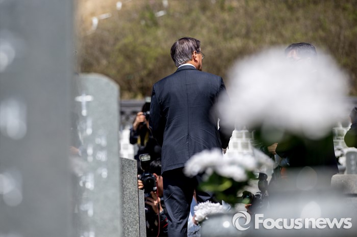 (광주=포커스뉴스) 문재인 더불어민주당 전 대표가 8일 오전 전남 광주 5.18 민주묘지를 찾아 민주열사 묘지를 둘러 보고 있다.