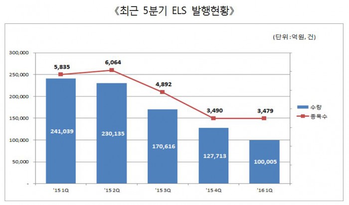 예탁결제원 측은 "지난해 6월부터 지속된 중국발 증시쇼크로 홍콩항셍중국기업지수(HSCEI)를 비롯해 주요 주가지수가 급락하면서 ELS 투자심리가 크게 위축된 것으로 보인다"고 설명했다.