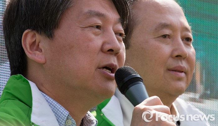 (천안=포커스뉴스) 안철수 국민의당 대표가 8일 오후 충남 천안 신부동 신세계백화점 앞에서 천안에 출마한 후보의 지지를 호소하고 있다.