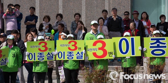 (천안=포커스뉴스) 8일 오후 충남 천안 신부동 신세계백화점 앞에서 시민들이 안철수 국민의당 대표의 천안지역 후보의 지지를 호소를 바라보고 있다.