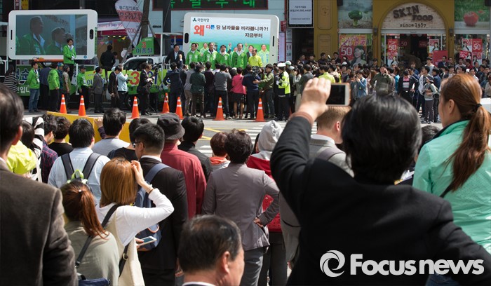 (천안=포커스뉴스) 안철수 국민의당 대표가 8일 오후 충남 천안 신부동 신세계백화점 앞에서 천안에 출마한 후보의 지지를 호소하고 있다.