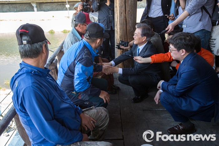 (광주=포커스뉴스) 문재인 더불어민주당 전 대표와 김홍걸 국민통합위원장이 8일 오후 광주시 서구 광주공원 앞에서 주민들과 대화를 나누고 있다.
