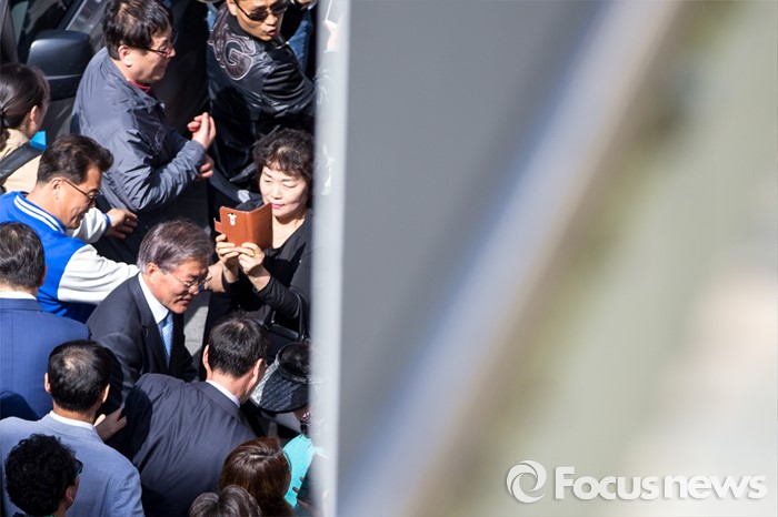 | △ 지지자들 만나는 문재인 전 대표 |