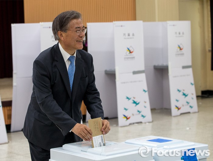 (광주=포커스뉴스) 문재인 더불어민주당 전 대표가 8일 오후 광주광역시 북구청에 마련된 사전투표소에서 투표를 하고 있다.