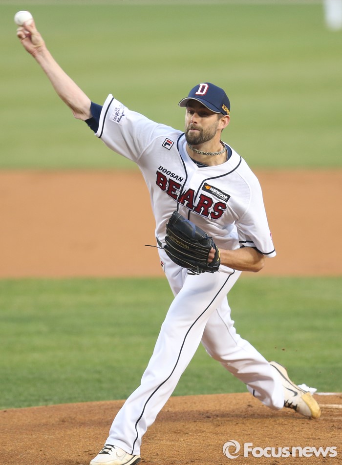 (서울=포커스뉴스) 8일 서울 잠실구장에서 열린 2016 프로야구 넥센-두산 경기에서 1회초 두산 선발투수 니퍼트가 투구하고 있다.