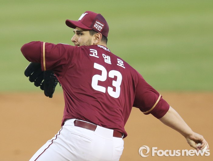 (서울=포커스뉴스) 8일 서울 잠실구장에서 열린 2016 프로야구 넥센-두산 경기에서 1회말 넥센 선발투수 코엘로가 투구하고 있다.
