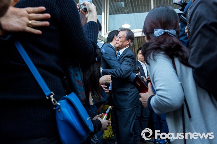 퐁광주=포커스뉴스) 문재인 더불어민주당 전 대표가 8일 오후 광주광역시 광산구 월곡시장을 방문해 한 시민과 포옹하고 있다.