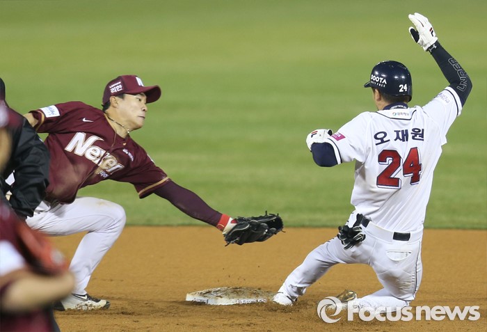 2루에서 세이프되는 오재원