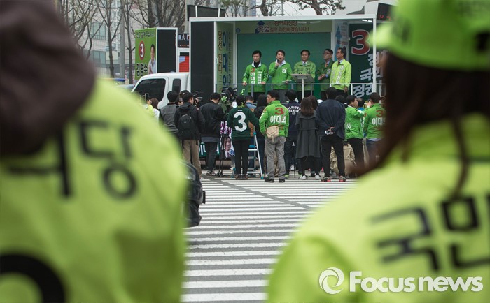 (수원=포커스뉴스) 9일 오후 수원시 장안구 수원종합운동장에서 열린 국민의당 합동유세에 참석한 안철수 대표가 시민들을 향해 지지를 호소하고 있다.