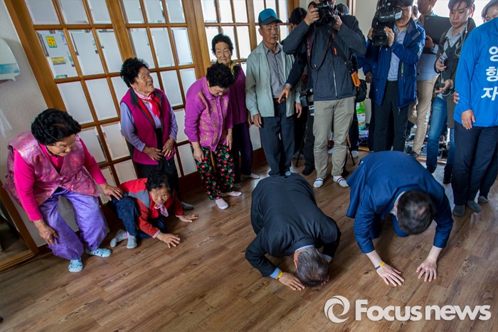 | △ 어르신들에게 큰절하는 문재인 전 대표 |