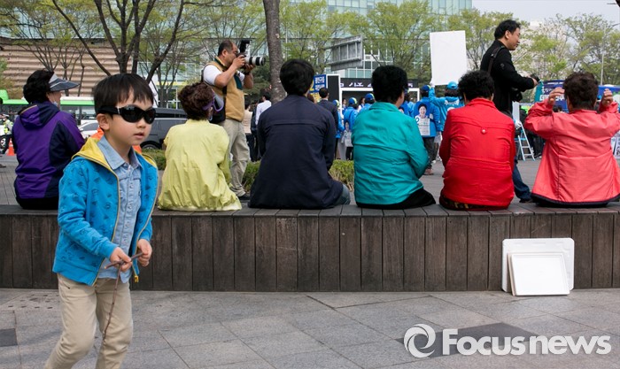 (서울=포커스뉴스) 10일 오전 서울 어린이대공원 앞에서 시민 및 지지자들이 김종인 더불어민주당 비대위 대표 겸 선대위원장과 전혜숙 광진갑 후보의 선거유세를 지켜보고 있다.