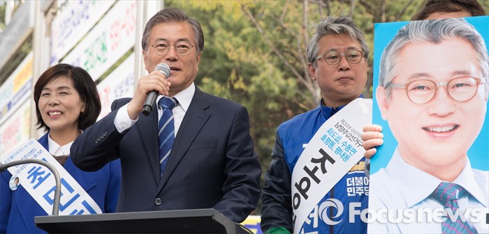 (남양주=포커스뉴스) 문재인 더불어민주당 전 대표가 10일 오전 경기도 이마트 남양주점 인근에서 조응천 더불어민주당 남양주갑 후보, 최민희 더불어민주당 남양주병 후보와 함께 유권자들에게 지지를 호소하고 있다.