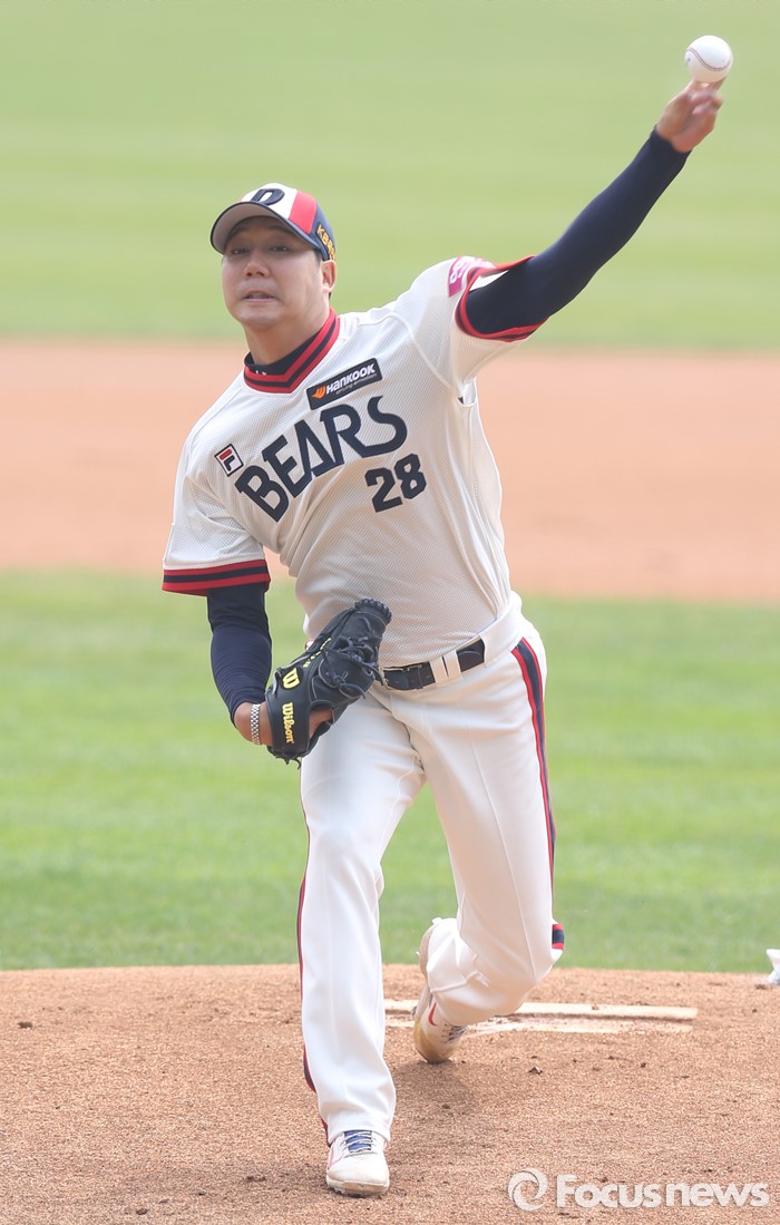 (서울=포커스뉴스) 10일 서울 잠실구장에서 열린 2016 프로야구 넥센-두산 경기에서 1회초 두산 선발투수 장원준이 투구하고 있다.