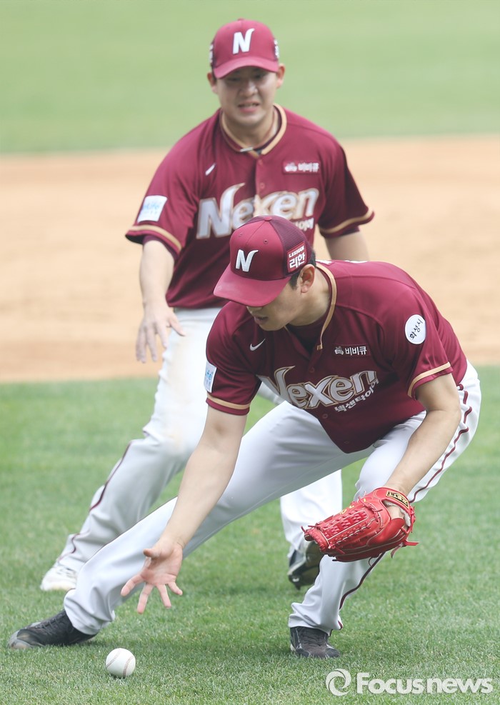 (서울=포커스뉴스) 10일 서울 잠실구장에서 열린 2016 프로야구 넥센-두산 경기 4회말 넥센 투수 양훈이 두산 오재원의 기습번트 타구를 잡고 있다.