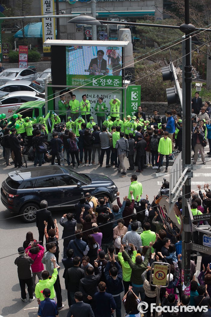 (서울=포커스뉴스) 20대 총선을 3일 앞둔 10일 오후 서울 성동구 옥수역 인근에서 안철수 국민의당 공동대표가 정호준 국민의당 중구성동을 후보 지원유세를 하고 있다.