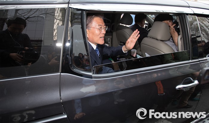(서울=포커스뉴스) 문재인 더불어민주당 전 대표가 10일 오후 서울 CGV 강남점 앞에서 김성곤 더불어민주당 강남갑 후보, 전원근 강남병 후보, 이정근 서초갑 후보, 김기영 서초을 후보와 함께 유세를 마치고 이동하고 있다.