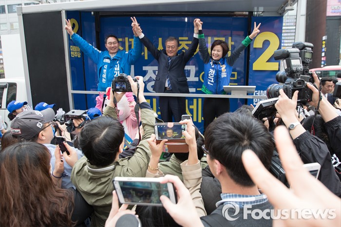 | △ 지지호소 하는 문재인 전 대표와 후보들 |