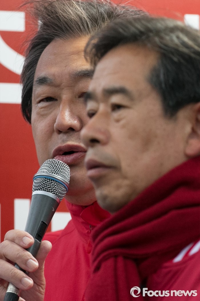 (울산=포커스뉴스) 김무성(왼쪽) 새누리당 대표가 11일 오전 울산시 동구 현대중공업 앞에서 안효대 울산 동구 후보 지원유세를 하고 있다.