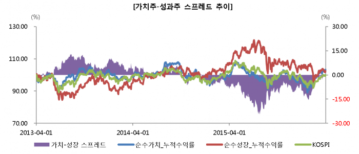 성장주펀드에서 가치주펀드에 대해 수익성과가 양호해지고 있지만 투자자들이 가치주펀드로 갈아타기보다는 특정펀드 집중보다는 포트폴리오 차원으로 접근해야 한다는 의견이 대부분이다.