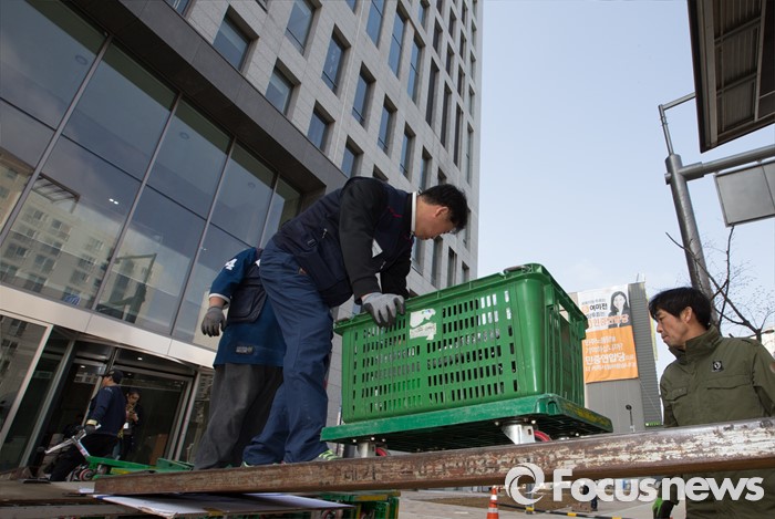 (세종=포커스뉴스) 세종시로 이전한 인사혁신처 직원들이 첫 출근한 11일 오전 세종시 절재로 인사혁신처에 집기류가 운반되고 있다.