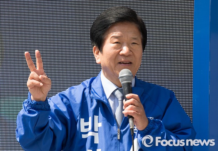 (대전=포커스뉴스) 20대 국회의원 선거를 이틀 남긴 11일 오전 대전 서구 흑석네거리에서 박병석 더불어민주당 후보가 지지를 호소하고 있다.