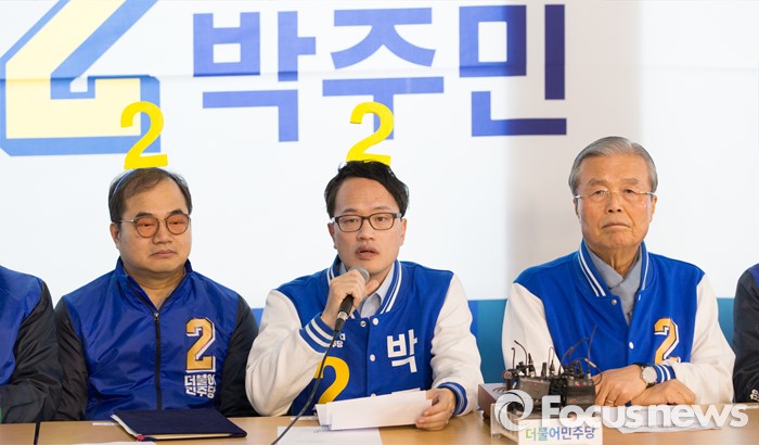 서울 지역에서 더민주 후보와 국민의당 후보가 단일화를 이뤄낸 것은 이번이 처음이다.8일 오전 서울 은평구 응암로 박주민 은평구갑 후보 사무실에서 박(가운데) 후보가 중앙선거대책위원회 회의에 참석해 모두발언을 하고 있다. 오른쪽은김종인 더불어민주당 비대위 대표 겸 선대위원장이. 2016.04.08 김인철 기자