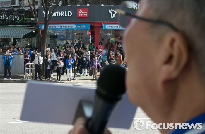 | △ 김종인 발언 듣는 유권자들 |
