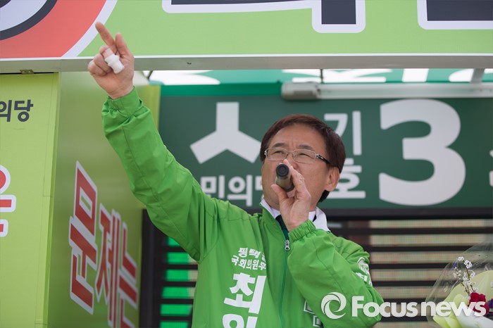 (평택=포커스뉴스) 최인규 국민의당 평택시갑 후보가 11일 오후 안산시 평택역 광장 앞에서 지지를 호소하고 있다.