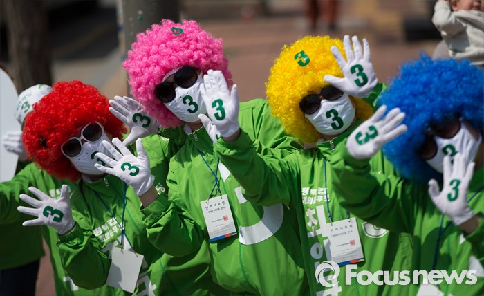 (평택=포커스뉴스) 국민의당 선거운동원들이 11일 오후 안산시 평택역 광장 앞에서 이계안 평택시을 후보와 최인규 평택시갑 후보 지원 유세를 하고 있다.