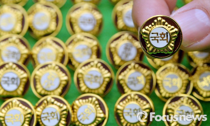 (서울=포커스뉴스) 4.13총선을 이틀 앞둔 11일 오후 서울 여의도 국회에서 20대 국회의원 당선자들이 착용할 배지가 공개되고 있다.