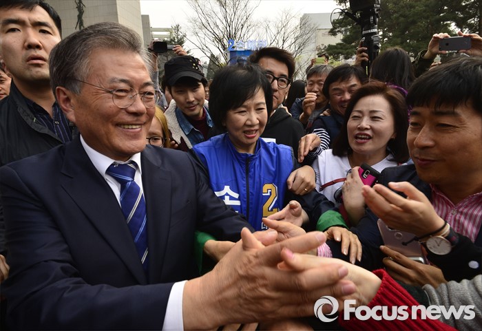| △ 시민들과 악수하는 문재인 |