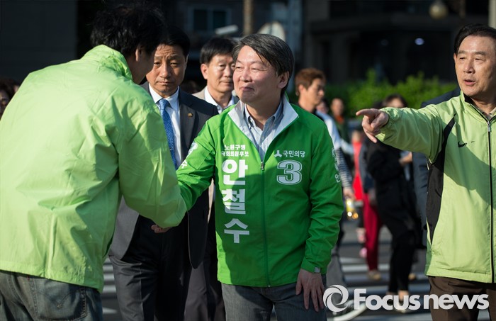 (서울=포커스뉴스) 안철수 국민의당 상임공동대표가 11일 오후 서울 관악구 롯데백화점 앞에서 김성식 관악갑 후보 지원 유세를 하고 있다.