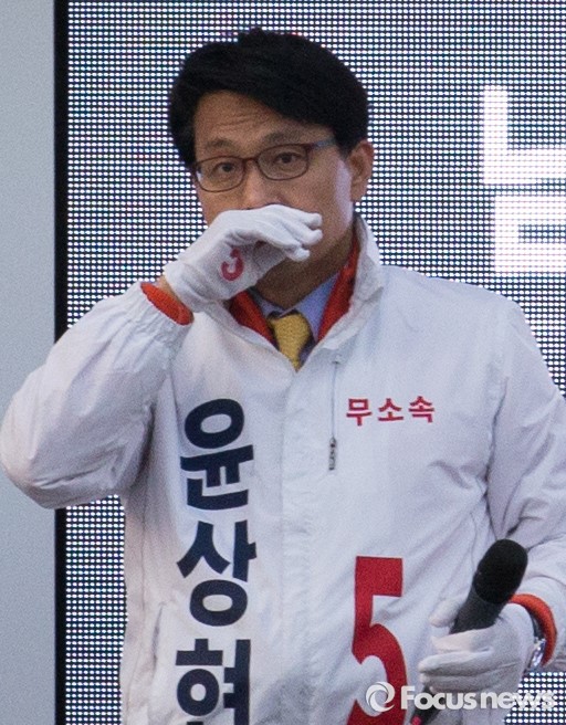 (인천=포커스뉴스) 20대 총선을 이틀 앞둔 11일 오후 인천 남구 제물포역 앞에서 윤상현 무소속 남구을 후보가 코를 만지고 있다.