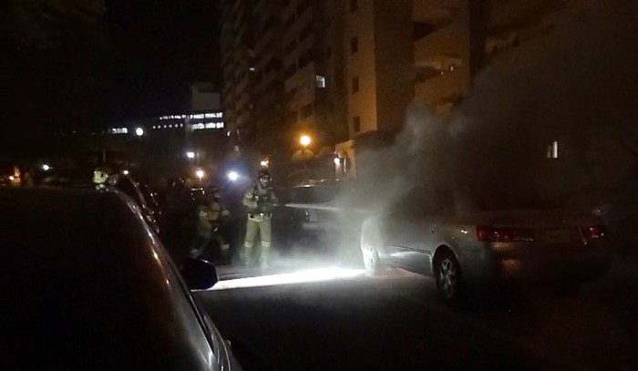 (서울=포커스뉴스) 11일 오후 11시 19분쯤 서울 송파구 오금동의 한 아파트 주차장에 세워져있던 승용차에서 불이 나 7분만에 꺼졌다.